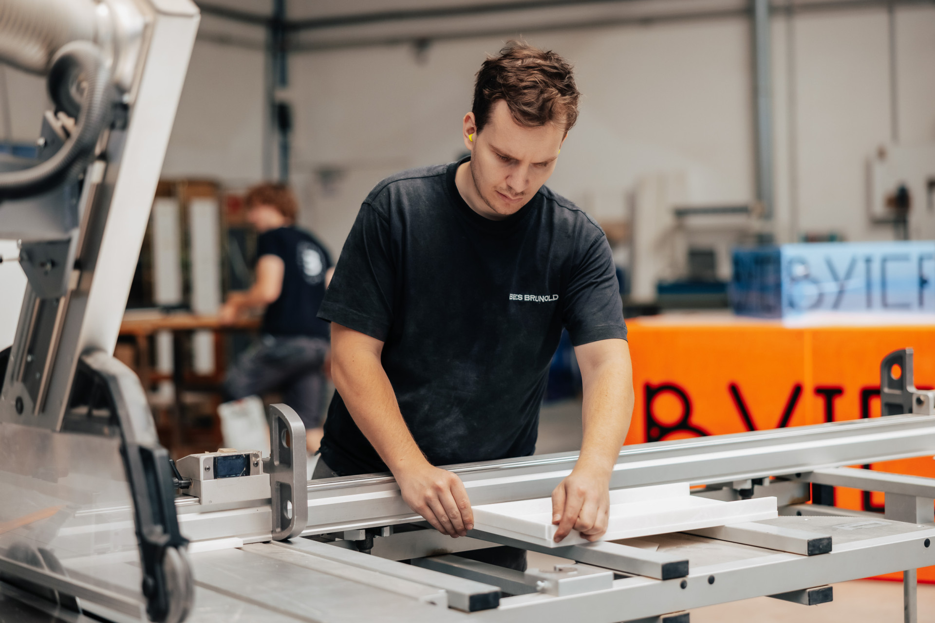 Brunold ist eine Schreinerei, die gegenüber anderen Schreinereien, viel mit neuer Technik arbeitet. Das macht es sehr interessant, weil was mich immer wieder fasziniert, wie schnell man auf kürzester Zeit viel produzieren kann. Auch die Projekte, die wir bei Brunold machen sind einzigartig und besonders. In der Ausbildung lernt man viel mit der Technik, aber auch das, was man in der Schule lernt, kann man in der Firma anwenden. Die Mitarbeiter erklären einem gerne etwas oder wollen unsere Meinung hören, wie wir Lehrlinge es machen würde.